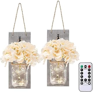 iXOOAA 1 Set mit 2 Packungen Vintage Mason Wandleuchte innen mit künstlichen Blumen Wandleuchten, Wandleuchte Schlafzimmer mit Batterie, Wandleuchte Badezimmer, Wandleuchte außen
