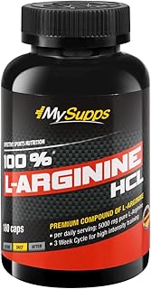 My Supps 100% L-Arginine-Hydrochlorid - hochdosiert - 5000mg pflanzliches pures L-Arginine HCL aus Fermentation je Tagesdosis , Made in Germany (180 Kapseln)