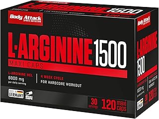 Body Attack L-Arginine 1500, L-Arginin Kapseln hochdosiert, Pre-Workout Produkt mit 6000mg L-Arginine HCL pro Tagesportion für Hardcore Workouts (120 Caps)