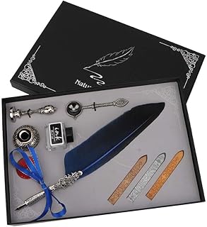 Retro Feather Quill Pen Set Europäische Vintage Klassische Metallfedern Kalligraphie Schreibstift Kit Feather Dip Pen mit Box(Blue)