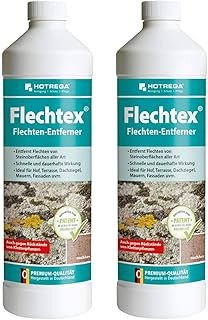 Produktdetails. Hotrega Flechtex Flechten-Entferner, 750 ml. 750 ml Flasche mit Aufprellgewinde. Lag. 1702160. Merkmale. Flechten sind symbiotische Verbindungen zwischen Pilz und Alge. Sie sind fast unbegrenzt überlebensfähig und widerstehen herkömmlichen Reinigungsmethoden. HOTREGA® Flechtex Flechtenentferner, Reiniger zur Entfernung Flechten von Steinoberflächen aller Art, 750 ml - Flasche 18,75 € 25,00 €/Liter 21,70 € inkl.