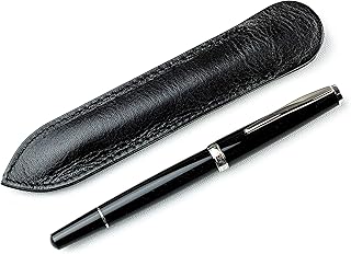 DELMON VARONE - Premium Füllfederhalter Schwarz mit Patrone/Konverter und Lederetui, Metall Füller mit feiner Feder und Leder Etui mit Gravur, Füllfeder für Erwachsene edel, nachfüllbar mit Pen Case