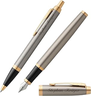 PARKER Schreibset IM Brushed Metal G.C. mit Gravur Füller und Kugelschreiber mit Geschenk-Etui