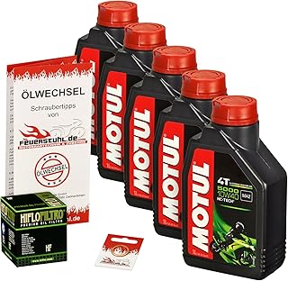 Motul 10W-40 Öl + HiFlo Ölfilter für Suzuki SV 650 /S, 99-10, AV BY - Ölwechselset inkl. Motoröl, Filter, Dichtring