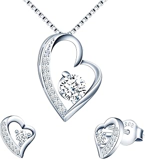 Damen Schmuckset Halskette mit Herz Liebe Zirkonia Anhänger & Damen Ohrstecker Ohrringe aus 925 Sterling Silber für Frau Mädchen