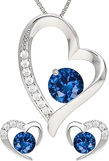 Blue Heart 925 Sterling Silber Schmuckset mit Saphir Blau Zirkonia Stein bestehend aus Herz Anhänger, Ohrstecker und 45 cm Damen Halskette im Etui