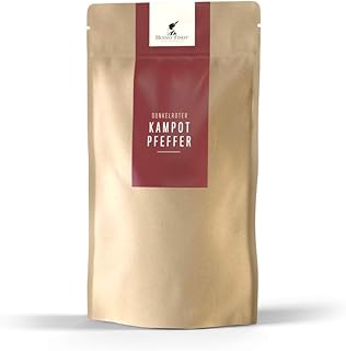 Hennes Finest Kampot Pfeffer Dunkelrot - 100g Dunkelroter Kampot Pfeffer, Dunkelroter Pfeffer ganz, Pfeffer für Mühle, Dunkelroter Pfeffer Kampot, ganze dunkelrote Pfefferkörner, Kambodscha Pfeffer
