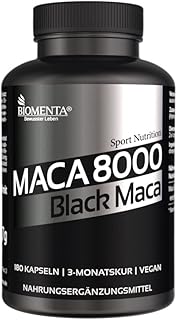 BIOMENTA Maca 8000 - Maca hochdosiert – Schwarzes Maca aus Peru - 180 Black Maca Kapseln - 3 Monatskur – vegan - Pures Maca Extrakt aus Maca Pulver