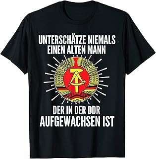 Mit Spruch Aufdruck: Unterschätze niemals einen alten Mann der in der DDR aufgewachsen ist. Die perfekte Geschenkidee für Freunde, Männer, Opa, Familie, Großeltern, Arbeitskollegen, Herren oder den Mann. Deutsche Mark, früher war alles besser, 40 Jahre, 50 Jahre, 30 Jahre. Unterschätze niemals einen alten Mann, der im August geboren wurde als Tshirt Design. Alte Männer sind reif und weise und sie brauchen Respekt, unterschätzen Sie sie also nie. Ein tolles Shirt für alte Männer im August, sie sind stolz auf ihr Alter. Ein Shirt für den Vatertag oder Urlaub. Ein perfektes Geschenk für den Ehemann, Großvater, Freund, Familie, Opa. Alter Mann T-Shirts sind lustig. Geburtstagsgeschenk für den im August geborenen Mann.