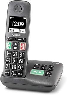Gigaset E290A - Schnurloses Senioren-Telefon mit Anrufbeantworter und großen Tasten - großes Display, Zielwahltasten für wichtige Nummern, Verstärker-Funktion für extra lautes Hören, schwarz.