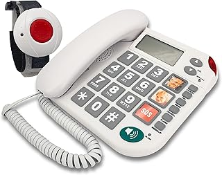 MAXCOM (G-TELWARE®) KXT481SOS 2022er Modell Haus-Notruf-Seniorentelefon mit Funk-SOS-Sender, schnurgebundenes Festnetz-Telefon mit 2 Armbandsendern, Große Tasten, TAE Stecker, Hörgerätekompatibel