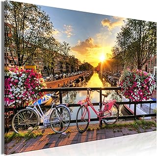 decomonkey Bilder Landschaft 120x80 cm 1 Teilig Leinwandbilder Bild auf Leinwand Vlies Wandbild Kunstdruck Wanddeko Wand Wohnzimmer Wanddekoration Deko Natur Blumen Sonne