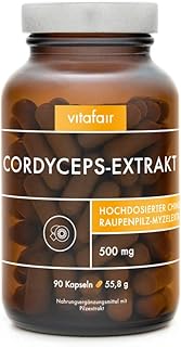 Cordyceps Extrakt - 500mg pro Kapsel - 40% Polysaccharide - Vegan, Ohne Magnesiumstearat, Braunglas, German Quality - 90 Kapseln