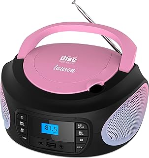 Lauson LLB999 Tragbarer CD-Player | LED-Discolichter | Kopfhöreranschluss | Kinder Cd Player Mädchen | FM Radio CD | USB | Aux In | LCD-Display, Netz & Batterie | Pink