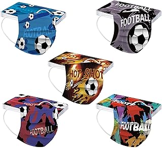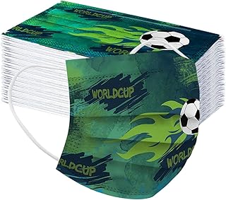 50 Stück Mundschutz Erwachsene Einweg 3-lagig mit Motiv Fußball 2021 Bunt Mund Nasenschutz Druck Tücher Atmungsaktiv Mund-Tuch Bandana Halstuch Schals
