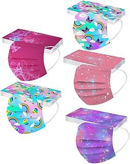 FWfdhe 50 Stück Mundschutz Kinder Einweg 3-lagig mit Motiv Bunt 3D Druck Mund Nasenschutz Druck Tücher Atmungsaktiv Mund-Tuch Bedeckung Bandana Halstuch Schals für Mädchen Jungen