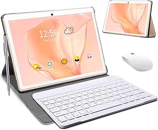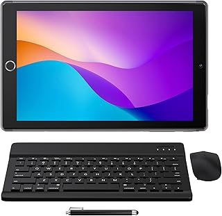 10 Zoll Tablet 4GB RAM 64GB ROM Tablette mit Tastatur und Maus, Android 10, 8000 mAh Akku, 5MP + 8 MP Dual Kamera, WiFi, Bluetooth, MicroSD 4-128GB, Schwarz