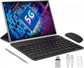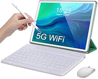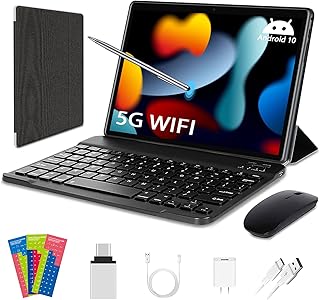 Tablet 10 Zoll 5G WiFi, Android 10 Tablet mit Tastatur, 4 GB RAM + 64 GB ROM / 128 GB, Octa-Core 1.6 Ghz, 6000 mAh, 1080P IPS, Dual Kameras, Bluetooth, Dual-Band WiFi Version