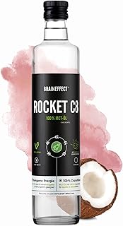 BRAINEFFECT Rocket Veganes MCT Öl C8 - Octane MCT Oil Extrakt aus Kokosöl (100% Caprylsäure), MCT Öl C8 - Ideal für ketogene Ernährung, Bulletproof Coffee, Smoothies & Dressing - MCT-Öl in 500ml