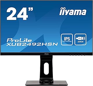 iiyama ProLite XUB2492HSN-B1 60,5cm (23,8") IPS LED-Monitor Full-HD (HDMI, DisplayPort in/out, USB3.0, USB-C dock 65W LAN) Ultra-Slim-Line, Höhenverstellung, Pivot, schwarz