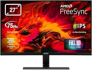 Acer Nitro RG270 Gaming Monitor 27 Zoll (69 cm Bildschirm) Full HD, 75Hz HDMI, 60Hz VGA, 1ms (VRB), 2xHDMI 1.4, VGA, HDMI/DP FreeSync, Schwarz
