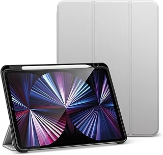 ESR Hülle kompatibel mit iPad Pro 11 2021 5G mit Stifthalter, Weiche Flexible Hülle mit Stifthalter, Pencil 2 Unterstützung, Trifold Ständer, Grau