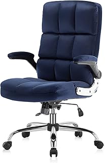 Yamasoro Bürostuhl ergonomischer Schreibtischstuhl Chefsessel mit aufklappbaren Armlehnen, höhenverstellbarer 360° Drehstuhl, Office Chair mit Verstellbarer Lordosenstütze, Büro Samt Stuhl (Blau)