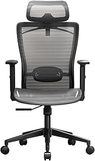 COMHOMA Ergonomischer Bürostuhl, Schreibtischstuhl, Chefsessel Atmungsaktiv, 360° Drehstuhl mit Lordosenstütze, verstellbare Kopfstütze und Armlehnen, Höhenverstellbar, bis 300LB Belastbar, Grau