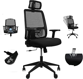 Bürostuhl Ergonomischer Bürostuhl, Schreibtischstuhl Computer Stuhl drehstuhl mit Netz-Design-Sitzkissen, Verstellbare Kopfstütze und Armlehnen, Maximale Belastbarkeit 150kg/330lb,Schwarz