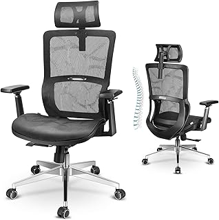 MFAVOUR Bürostuhl, Bürostuhl Ergonomisch, Ergonomischer Bürostuhl, Schreibtischstuhl mit 3D Armlehnen, Verstellbarer Lordosenstütze, Kopfstütze und Atmungsaktives Netzstoff, Bürostuhl bis 150 kg